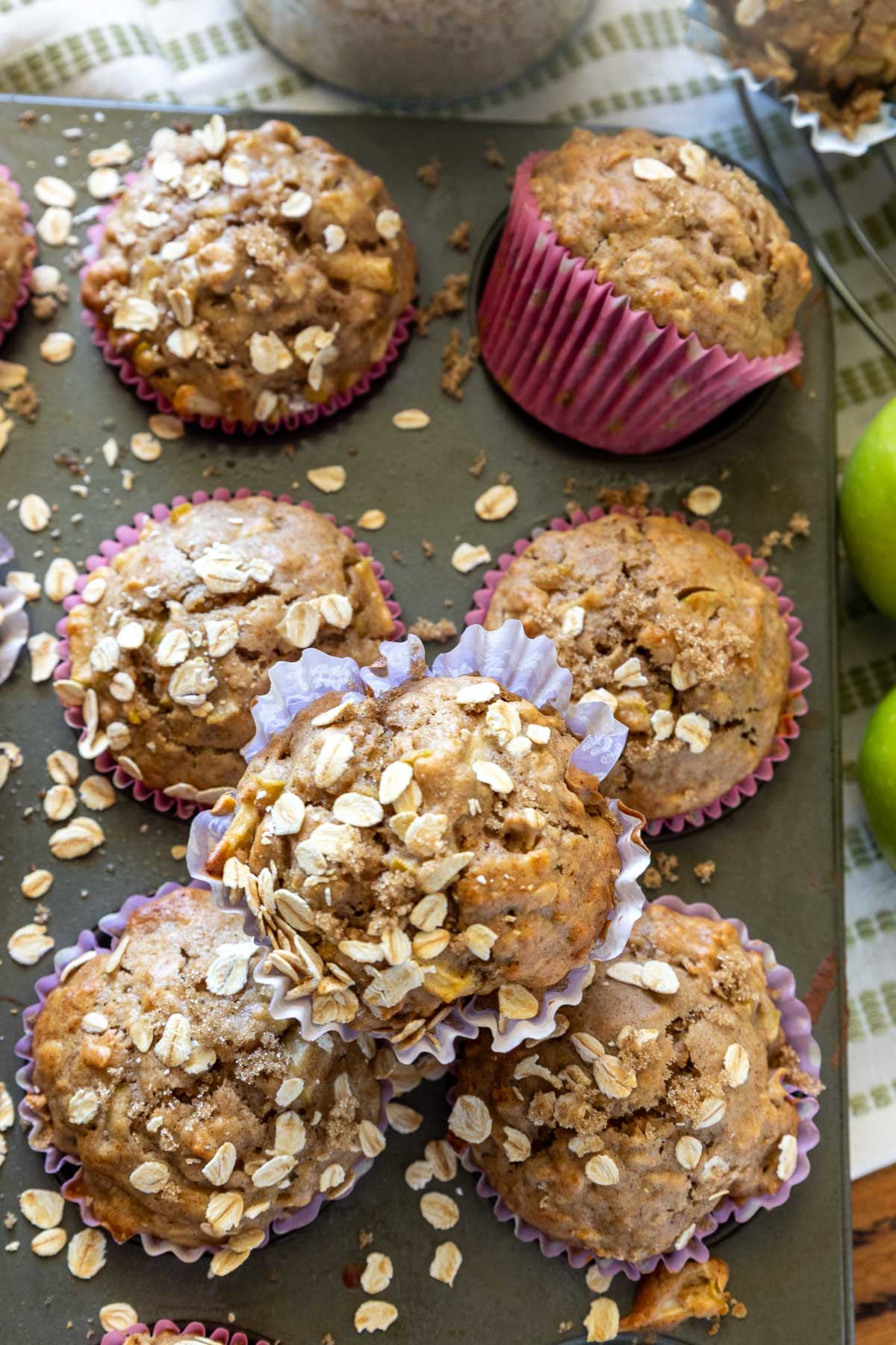 Apples: Tart, firm apples are best for apple muffins. You don’t want them to turn to mush as they cook. I like Granny Smiths, but others such as Honeycrisp or Pink Lady would work too.